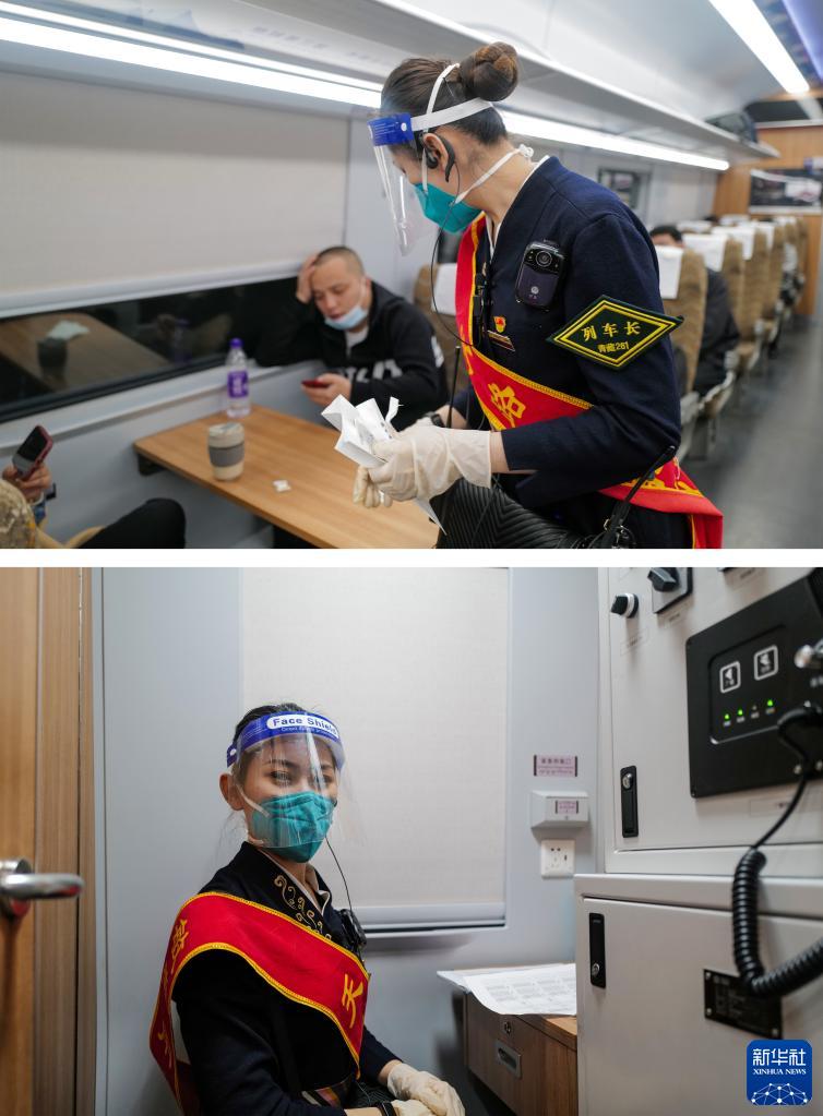 拼版照片:上图为3月27日,刘文静在列车上检查卫生;下图为刘文静在列车广播室。C893次列车长刘文静已经在铁路工作近十年,先后在青藏、拉日、拉林三条铁路线任职,亲身经历十年来西藏铁路运输的巨变。
