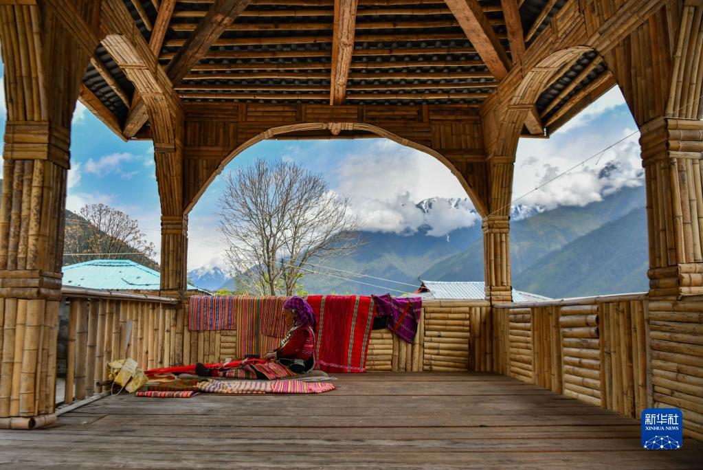 今年72岁的本央老人,是僜人服饰制作技艺西藏自治区级非遗传承人。在西藏林芝市察隅县沙琼村,老人身着传统的僜人服饰,在自家的凉亭里编织布料。