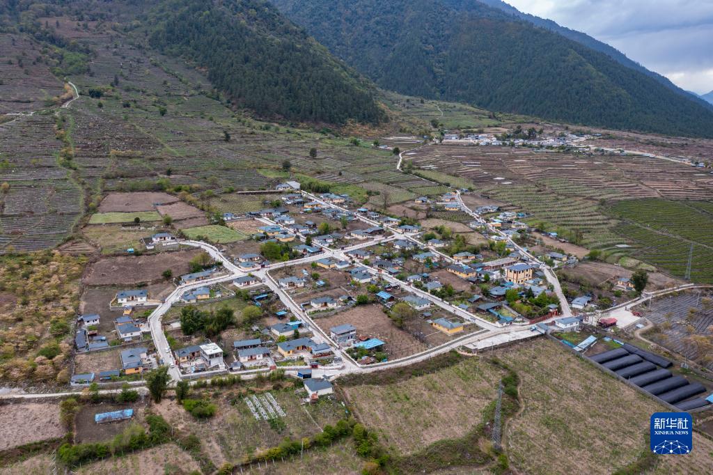 西藏林芝市察隅县沙琼村全景(4月19日摄,无人机照片)。