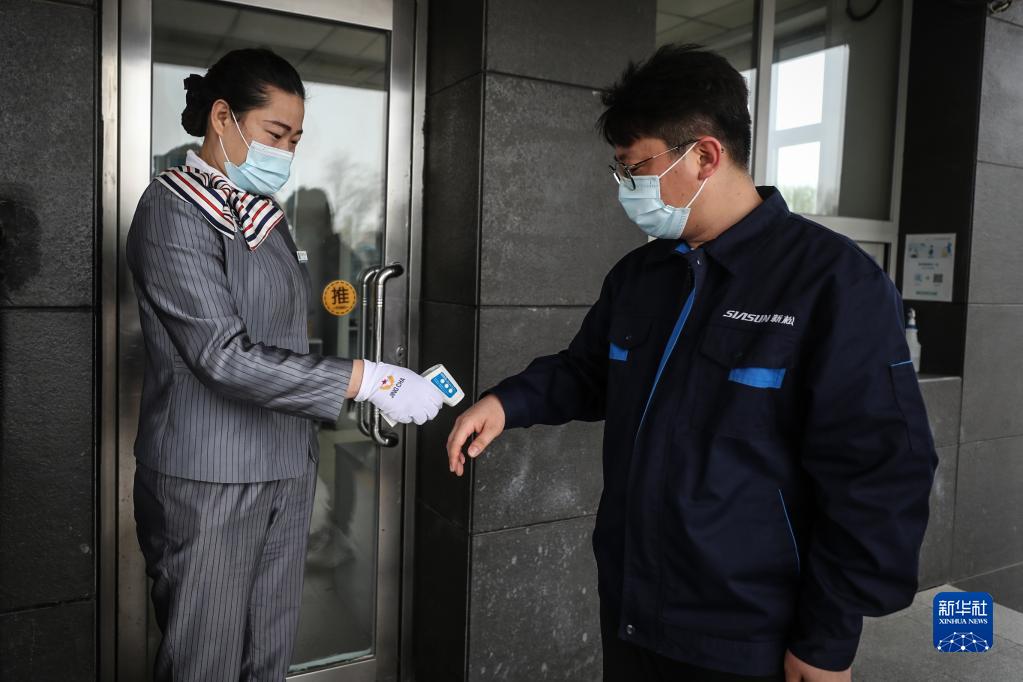 4月28日,工作人员对进入新松机器人自动化股份有限公司的员工进行测温。