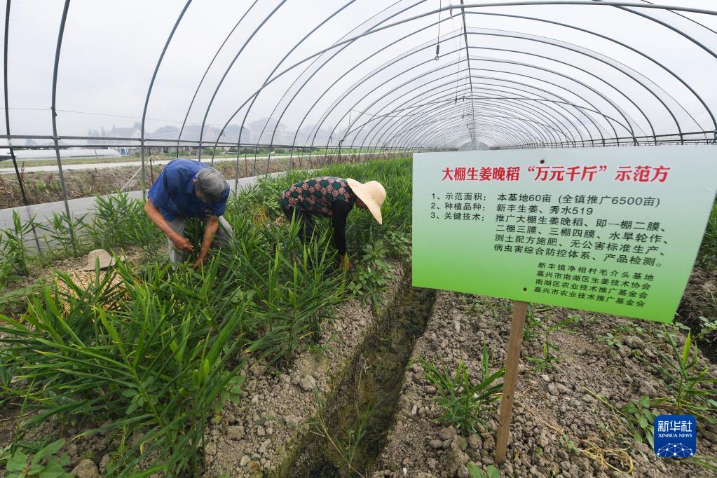 6月21日,在嘉兴市南湖区新丰镇净相村毛家头生姜种植示范区内,种植户在收获生姜。