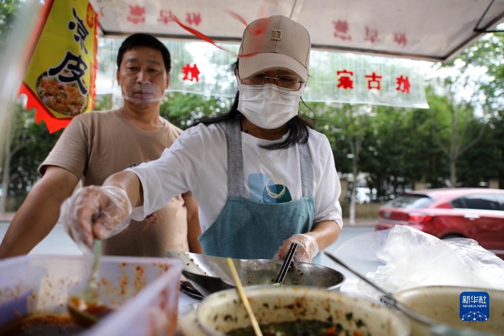 6月13日,朱艳和丈夫在凉皮摊忙碌着。新华社记者 曹力 摄