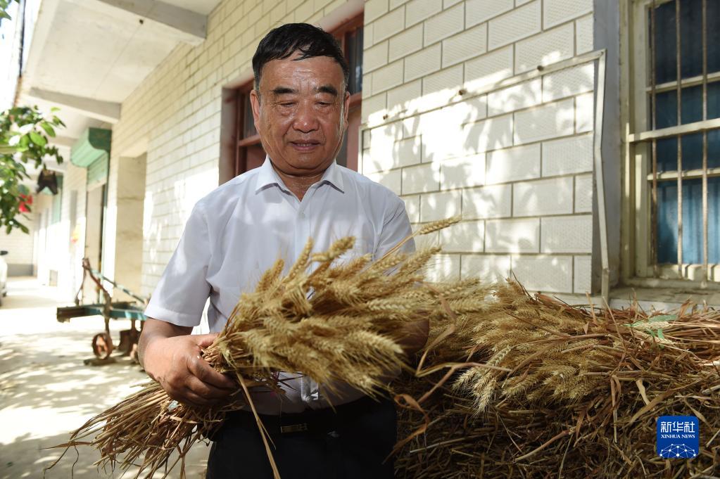 6月28日,徐淙祥在查看用于研究的小麦样品。