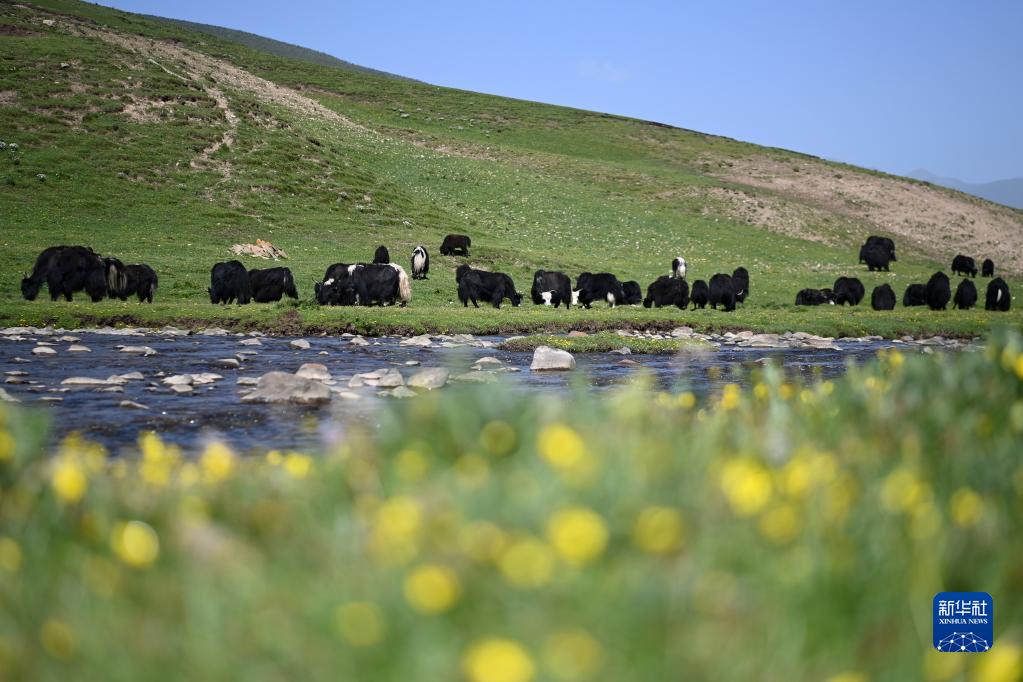 这是7月5日在称多县歇武镇牧业村拍摄的牦牛。
