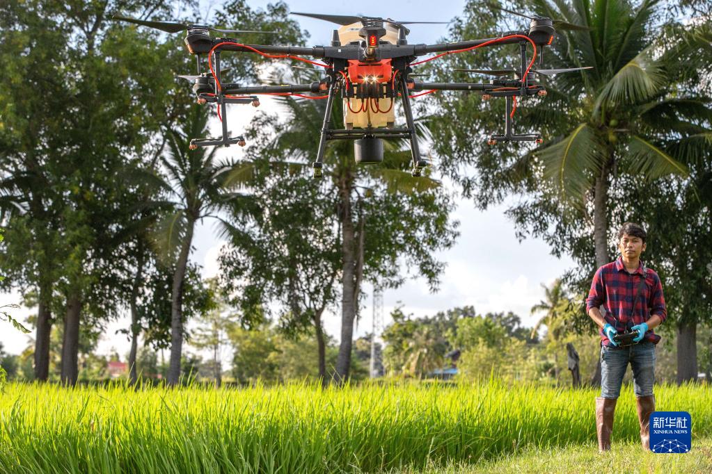 8月1日,尼空在泰国黎逸府操作大疆农业植保无人机。新华社记者 王腾 摄