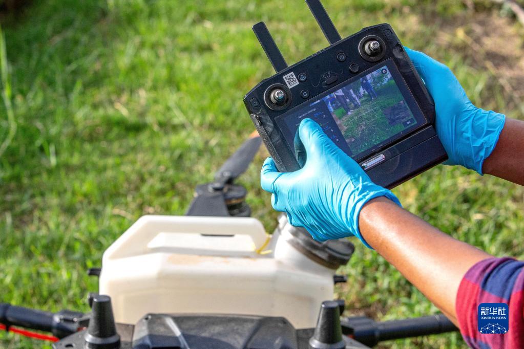8月1日,尼空在泰国黎逸府操作大疆农业植保无人机。新华社记者 王腾 摄