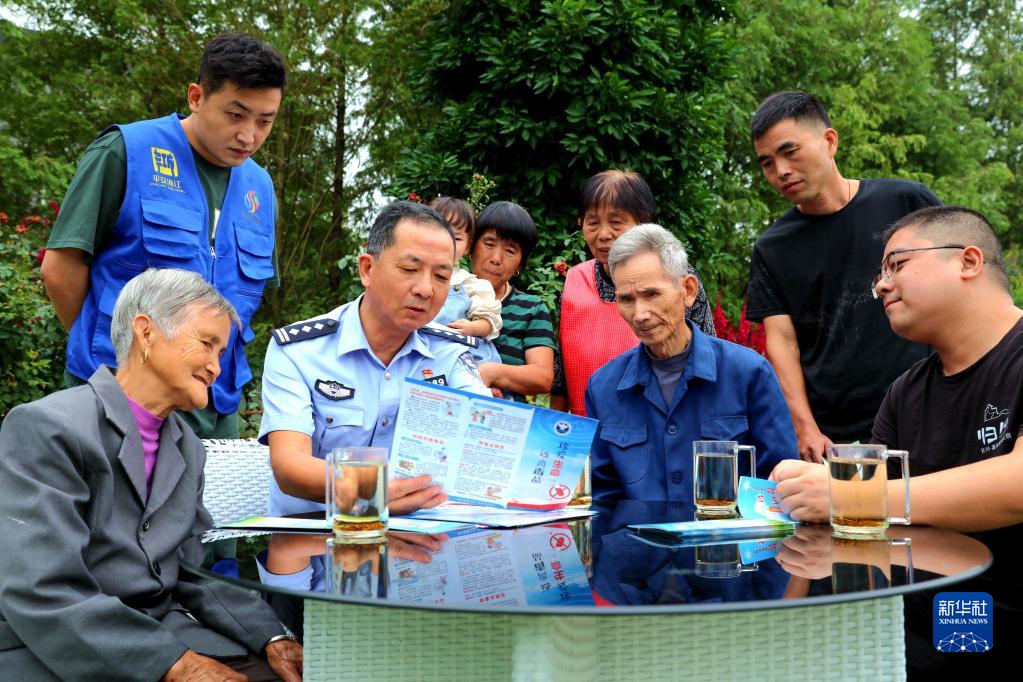 9月30日,水口乡社会治理办联合水口乡派出所民警向群众宣传禁毒等知识。