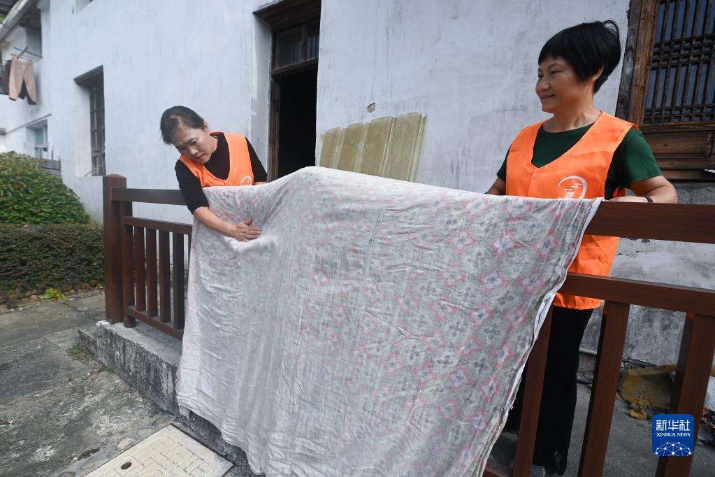 9月30日,“柳溪暖阳”党员助老志愿服务队队员给当地高龄孤寡老人晒被子、整理家务。“柳溪暖阳”党员助老志愿服务队以农村老年人实际需求为出发点,推出优质服务零距离活动,建立点对点帮扶机制,把理发、义诊、爱心餐等志愿服务送进家门。