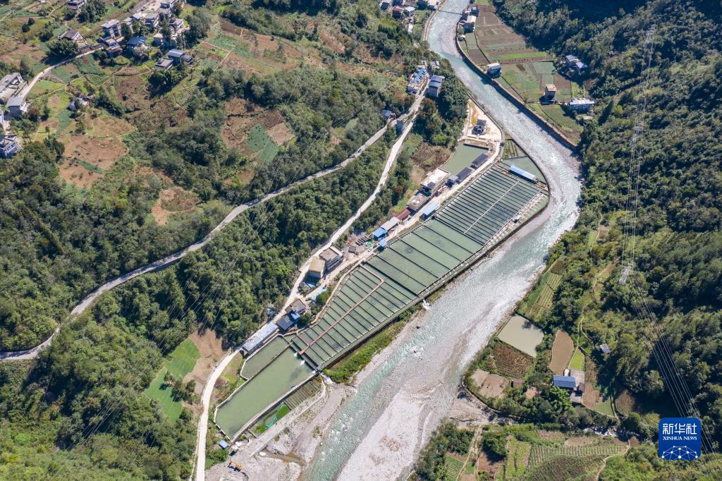 这是10月11日拍摄的重庆市城口县蓼子乡明安村冷水鱼产业基地(无人机照片)。新华社记者 黄伟 摄