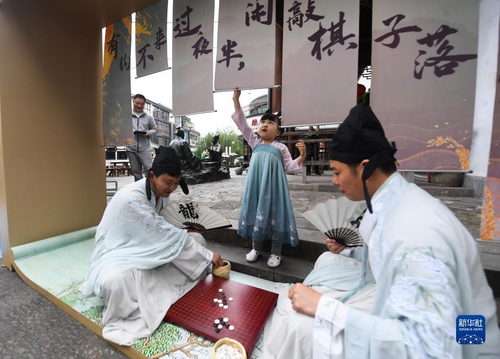 4月30日,居民参加在浙江省建德市寿昌古镇举办的传统文化活动。