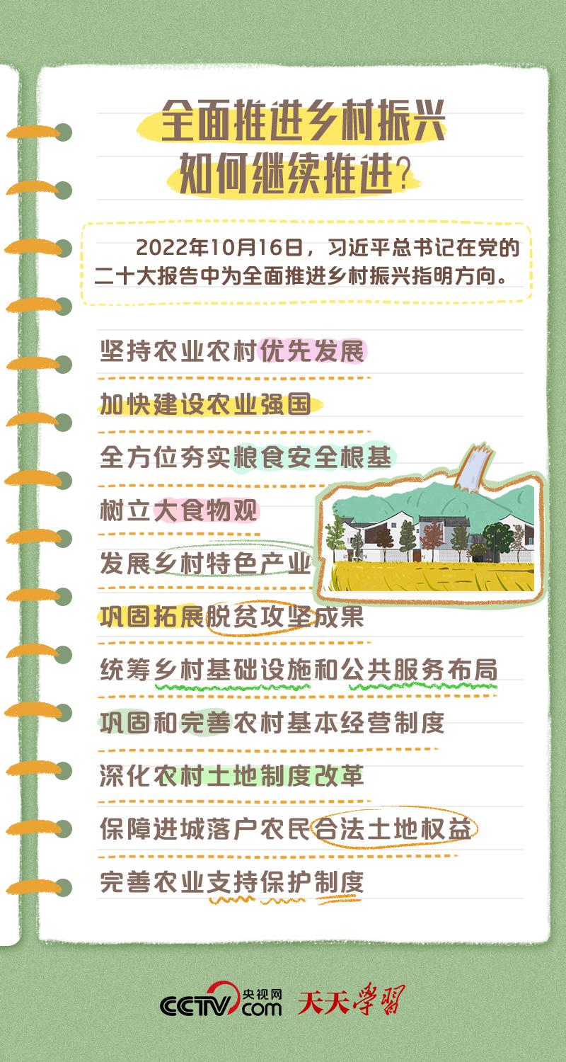 党的二十大闭幕不到一周,总书记来到陕西延安、河南安阳两地考察。总书记在考察中强调,要全面学习贯彻党的二十大精神,坚持农业农村优先发展,发扬延安精神和红旗渠精神,巩固拓展脱贫攻坚成果,全面推进乡村振兴,为实现农业农村现代化而不懈奋斗。