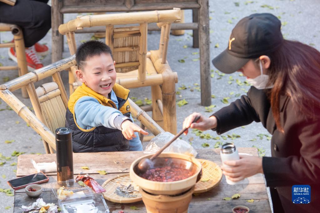 12月24日,在位于重庆解放碑商圈的著名景点山城巷的一家店内,游客品尝特色餐饮。