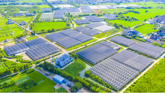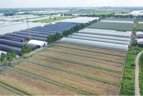俯瞰嘉兴市嘉善县姚庄镇,田成片、地成方,新型种植大棚整齐排列,这里是长三角首个现代农业小微产业园。