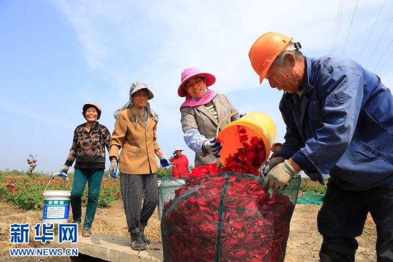 据了解,美栖花田现有1000亩食用玫瑰和23亩观赏玫瑰。目前,全村可采收优质食用玫瑰原料300余吨,观赏玫瑰近20万支,预计产值可达1500余万元。“花经济”为美栖村带来了好“钱”景,“薄弱村”变身“示范村”。