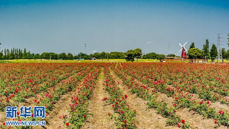 在节假日期间,成片绽放的玫瑰花海也让美栖村成为“网红打卡地”。玫瑰花田、乡道村弄、游乐园区……美丽的新江南村落中,游人如织,纷纷驻足与花海合影留念。依托“美栖花田”特色品牌,美栖村将玫瑰花产业园融入乡村全域旅游加以开发,进一步延长玫瑰花产业的产业链,推动产业融合发展。