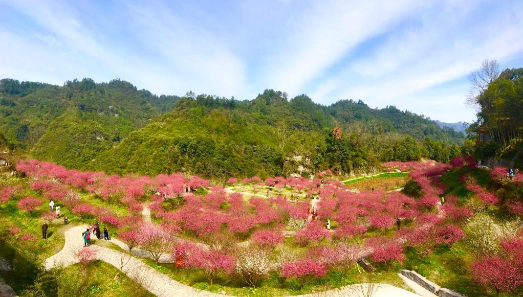 游客在湖南省永顺县洞坎村陈家坡的千株梅林游览(2022年2月20日摄)。新华社发(余光龙 摄)