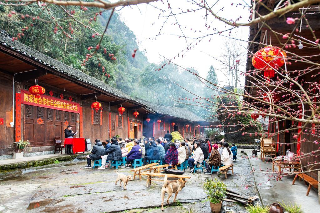 村民参加湖南省永顺县洞坎村陈家坡合作社年会暨股东分红大会(2022年1月29日摄)。新华社发(余光龙 摄)