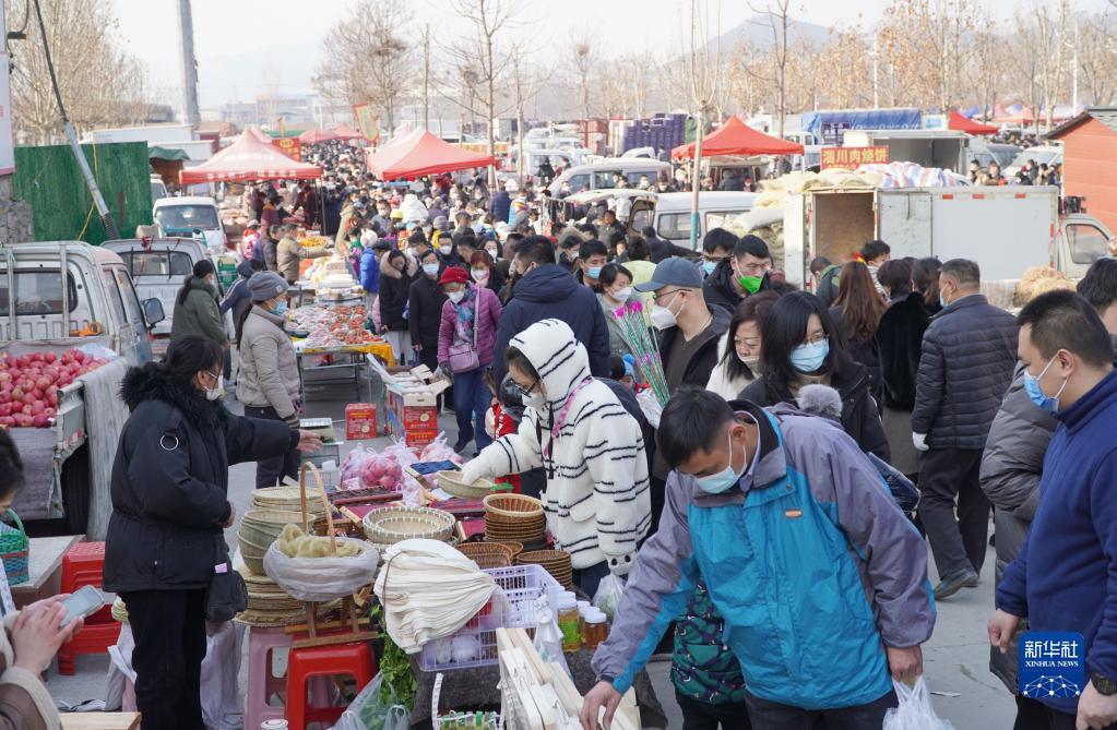 春节临近,山东省各地的农村大集呈现出红红火火的景象。人们在大集上购买商品、采办年货,感受农村大集特有的热闹气氛。