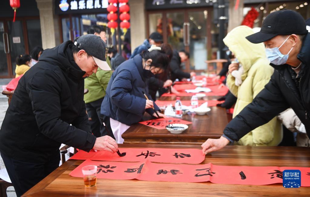 新登镇宋韵文化特色街区的送春联活动(1月16日摄)。