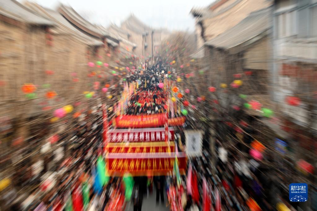当日是农历正月十六,在河南省浚县举行的正月古庙会上,几十支社火团队轮番表演,踩高跷、扭秧歌、耍狮子,锣鼓喧天,热闹非凡,形成一道富有特色的中原文化景观。河南省浚县的正月古庙会已有1600多年历史,有“华北第一庙会”之称,被誉为民俗文化的“活化石”,是中国民间文化保护工程项目、国家级非物质文化遗产。