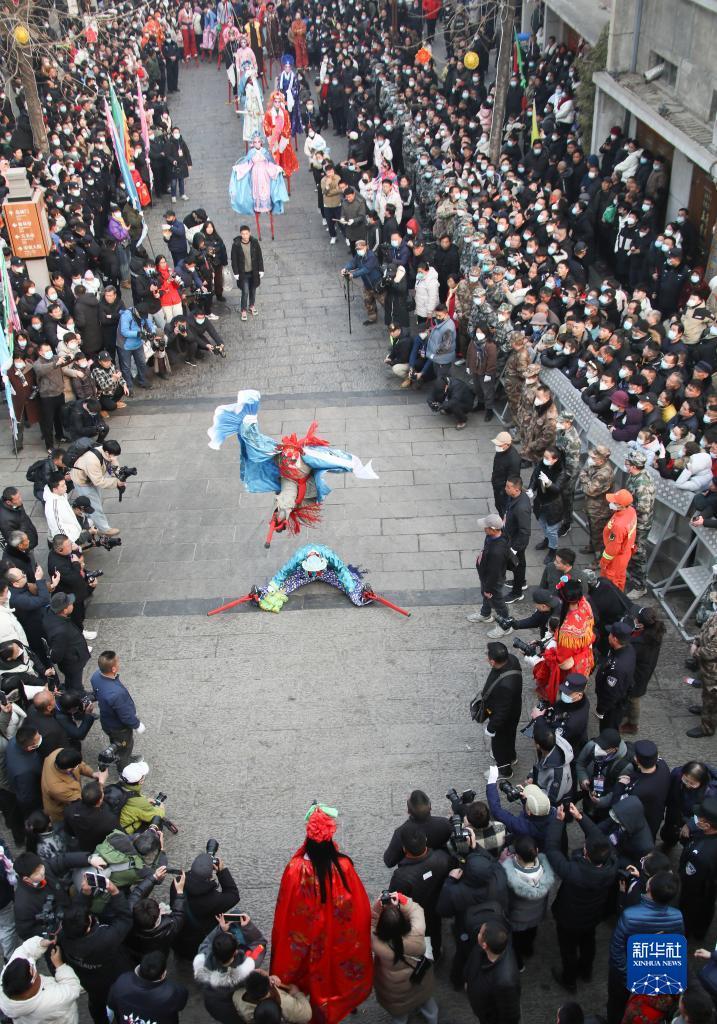 当日是农历正月十六,在河南省浚县举行的正月古庙会上,几十支社火团队轮番表演,踩高跷、扭秧歌、耍狮子,锣鼓喧天,热闹非凡,形成一道富有特色的中原文化景观。河南省浚县的正月古庙会已有1600多年历史,有“华北第一庙会”之称,被誉为民俗文化的“活化石”,是中国民间文化保护工程项目、国家级非物质文化遗产。