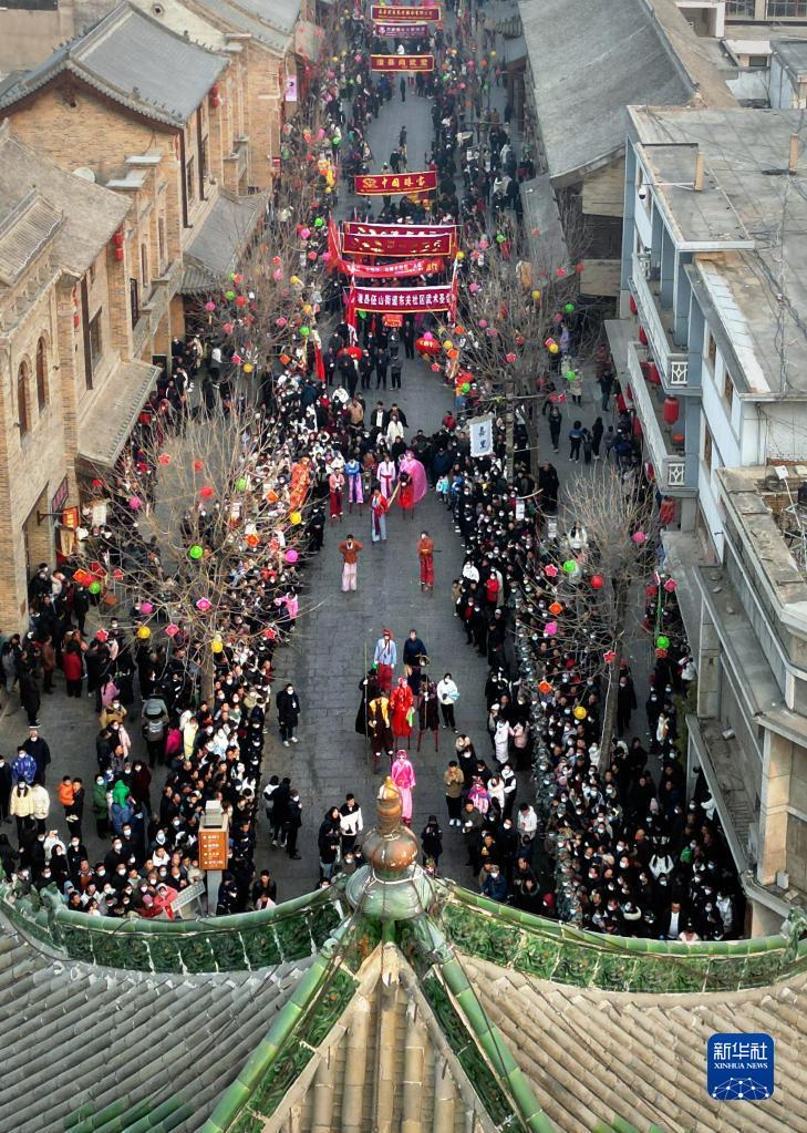 当日是农历正月十六,在河南省浚县举行的正月古庙会上,几十支社火团队轮番表演,踩高跷、扭秧歌、耍狮子,锣鼓喧天,热闹非凡,形成一道富有特色的中原文化景观。河南省浚县的正月古庙会已有1600多年历史,有“华北第一庙会”之称,被誉为民俗文化的“活化石”,是中国民间文化保护工程项目、国家级非物质文化遗产。