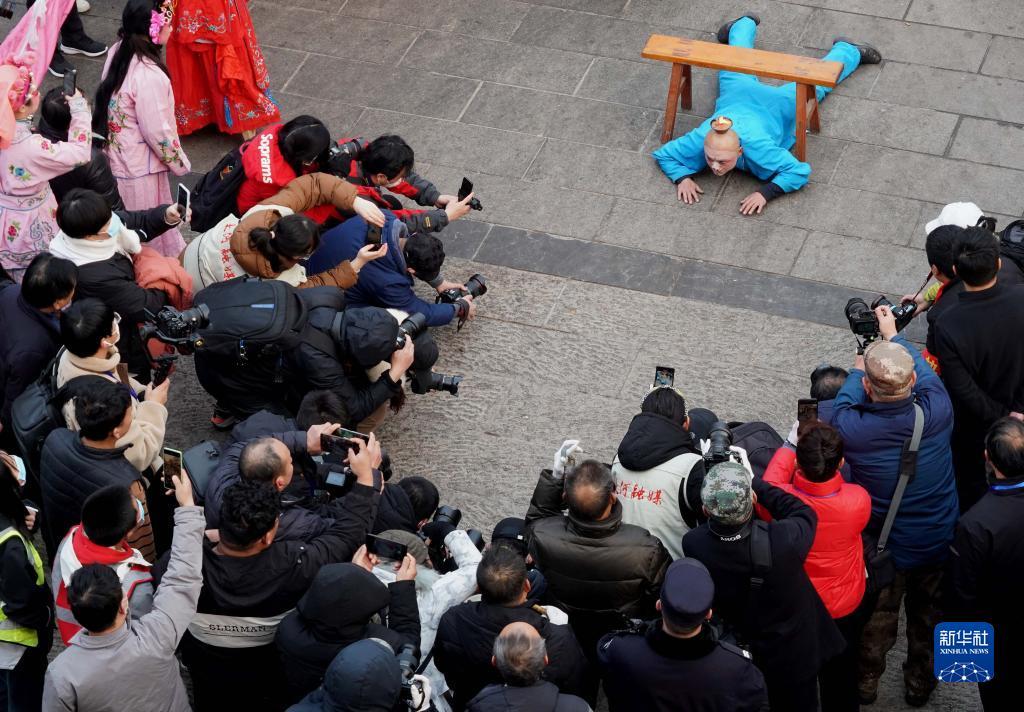 当日是农历正月十六,在河南省浚县举行的正月古庙会上,几十支社火团队轮番表演,踩高跷、扭秧歌、耍狮子,锣鼓喧天,热闹非凡,形成一道富有特色的中原文化景观。河南省浚县的正月古庙会已有1600多年历史,有“华北第一庙会”之称,被誉为民俗文化的“活化石”,是中国民间文化保护工程项目、国家级非物质文化遗产。
