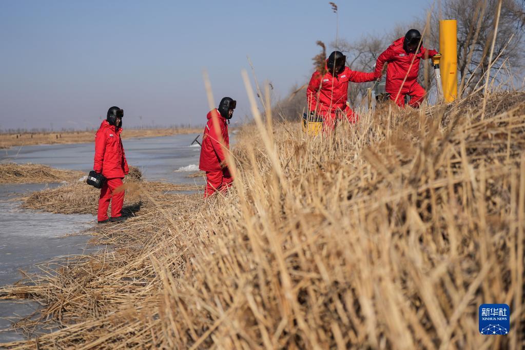 元宵节刚过,工人迎寒风、走冰面,在户外对管线进行巡查,保障供气安全。