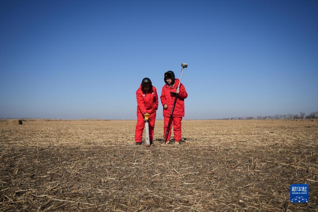 2月6日,中国石油辽河油田兴隆台输气分公司巡线工人在测量数据。