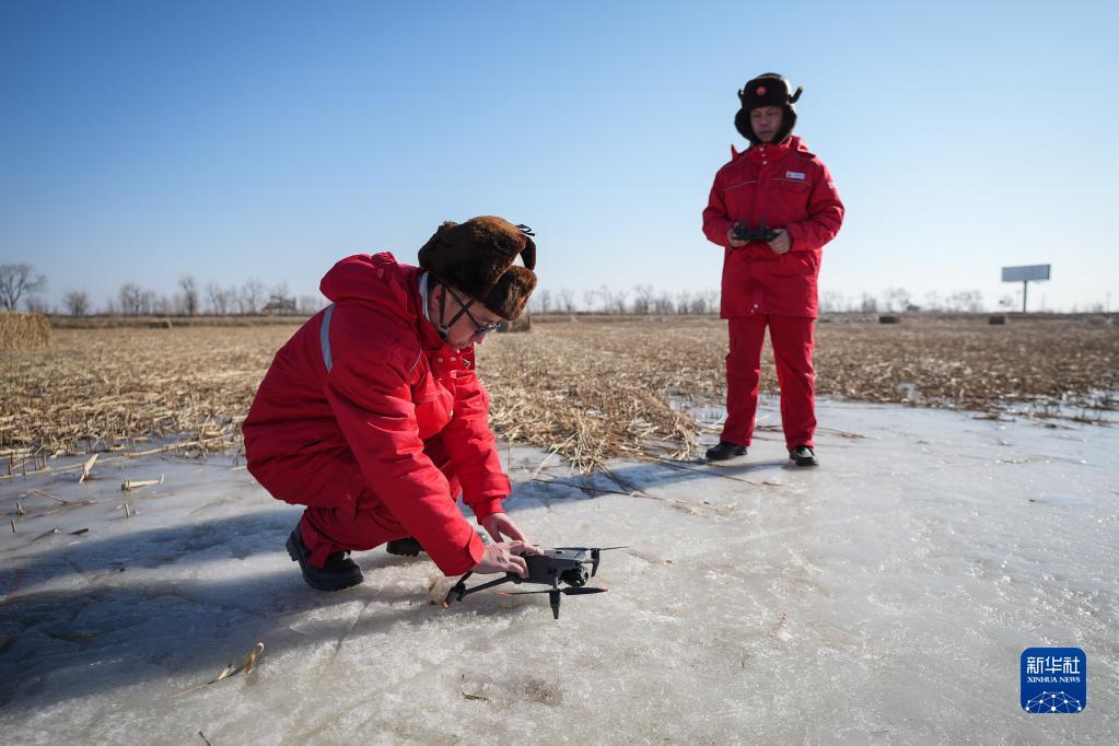 2月6日,中国石油辽河油田兴隆台输气分公司巡线工人准备使用无人机进行巡线工作。