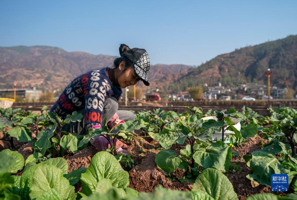 2月7日,在云南省大理白族自治州南涧彝族自治县杨免庄村,农民在田间除草。