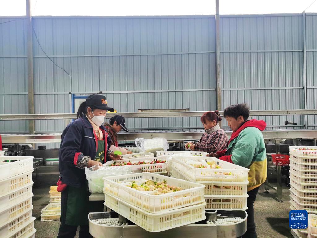 2月8日,泗渡农场工人在车间内分拣草莓。新华社记者 郑明鸿 摄