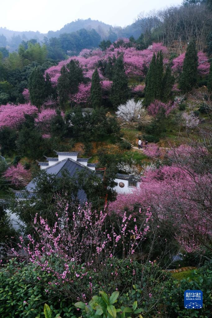 当日是雨水节气,浙江省诸暨市东白湖镇斯宅村依山而建的斯舜梅园吸引了不少游客前来踏春赏梅。该梅园种植近500株梅树,主要有红梅、白梅、垂枝梅、腊梅等10多个品种的梅花,是当地乡村旅游的一大特色。