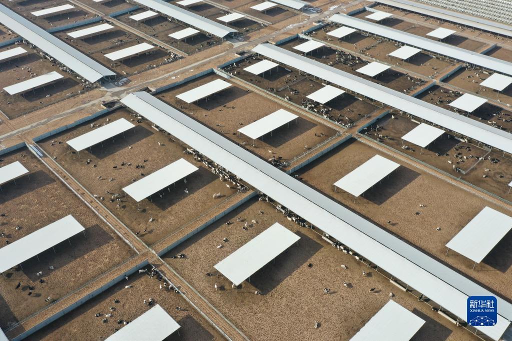 这是2月16日在武威市古浪县生态奶牛产业园拍摄的一家企业牧场的奶牛棚圈(无人机照片)。