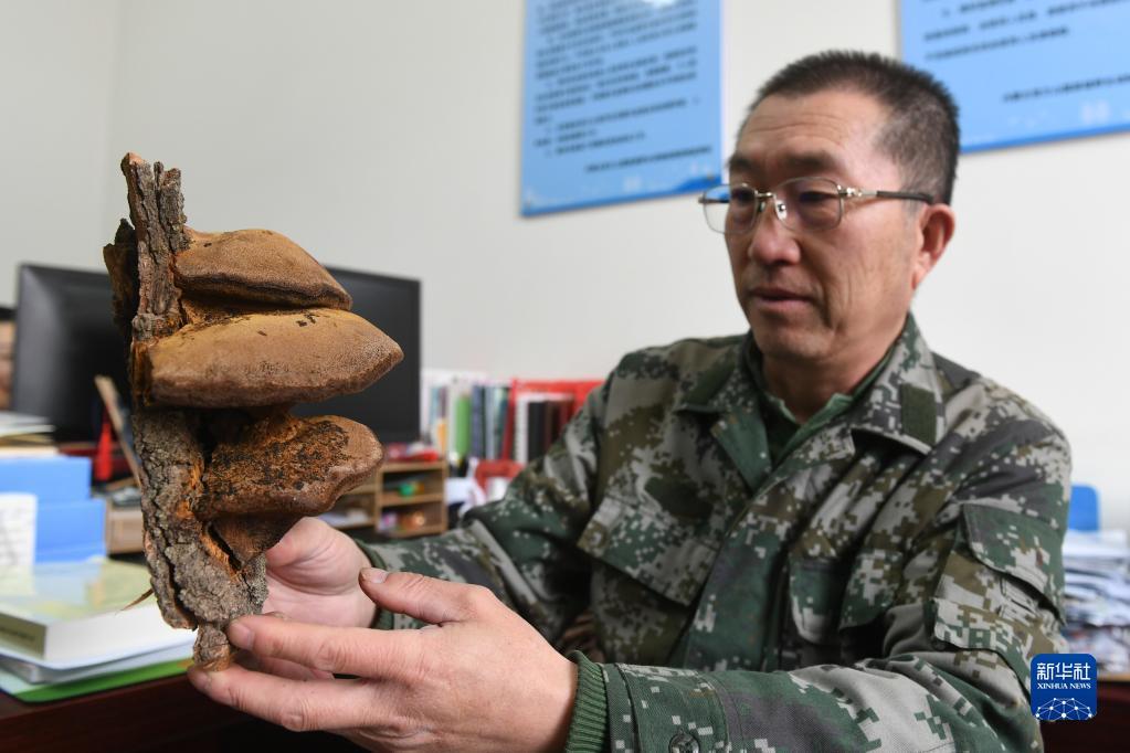 2月20日,在内蒙古贺兰山国家级自然保护区管理局,工作人员徐建国展示植物标本。