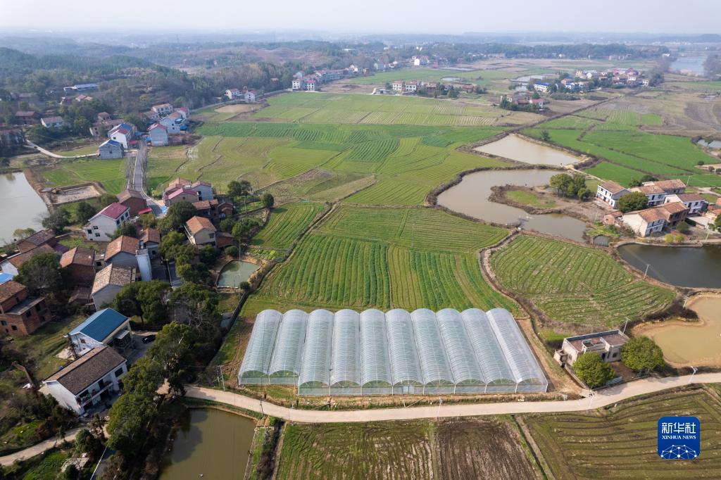这是2月21日在醴陵市沈潭镇江田村拍摄的一处新修建的育秧大棚(无人机照片)。