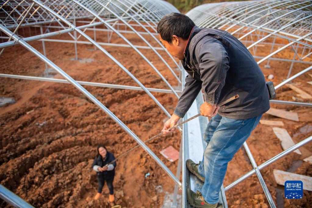新华全媒+丨湖南醴陵:抢建育秧大棚备春耕