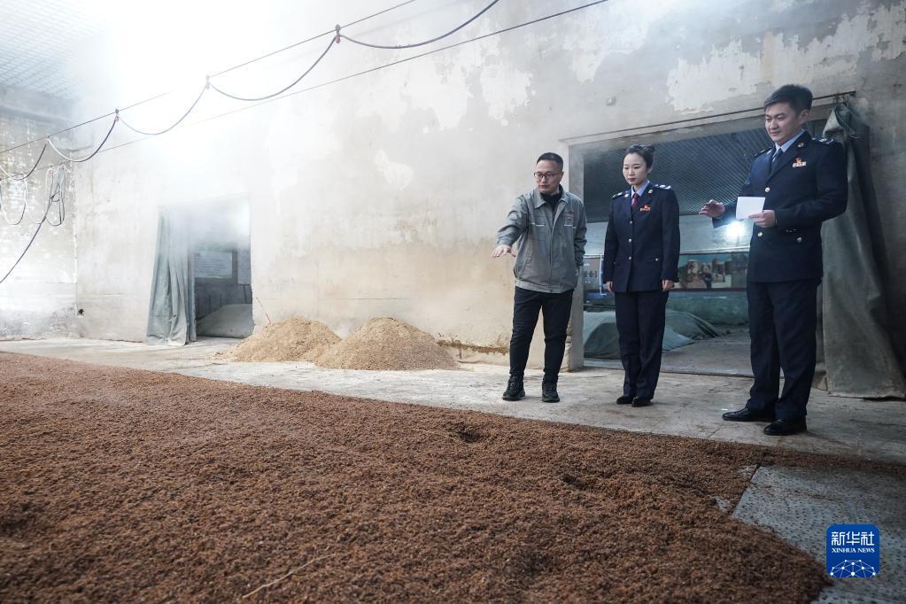 2月21日,国家税务总局阜新市税务局的工作人员在阜新三沟酒业的生产车间里向企业的工作人员了解生产情况,同时介绍税务政策、解答税务问题。