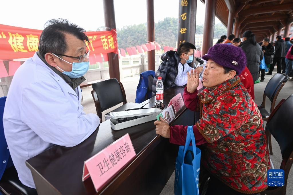2月22日,在杭州市临安区昌化镇的东坡桥上,医院专家在给当地百姓进行卫生健康咨询。