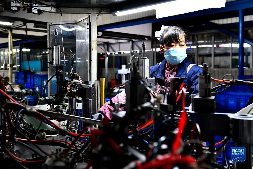 2月22日,在亚萨合莱国强(山东)五金科技有限公司,工作人员在加工五金配件。