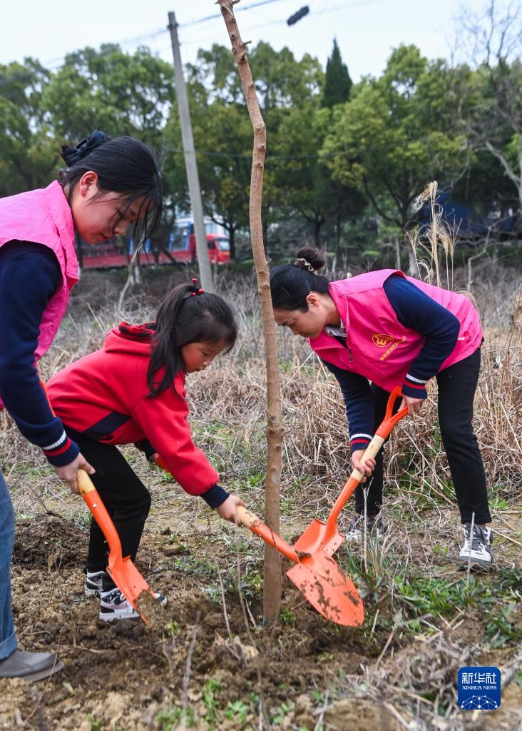 当日,浙江省湖州市长兴县李家巷镇中心幼儿园的师生们与青草坞村党员志愿者一起开展“植树添绿 与小树共成长”植树护绿主题活动,开启了春季校园劳动课的“第一课”。孩子们还给树苗挂上了心愿卡,通过这样的方式为绿色生态环境贡献自己的力量,同时也增强爱护植物、绿化环境、保护环境的意识。