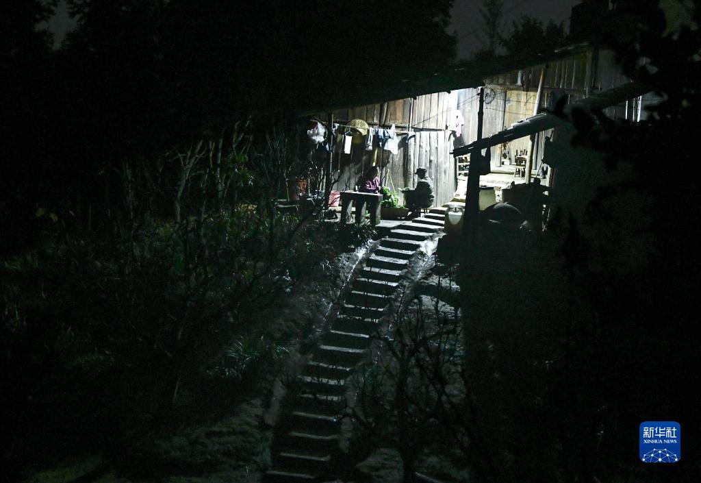 3月8日夜,黄同维与妻子在清理青菜,准备晒干制成盐菜备食用。