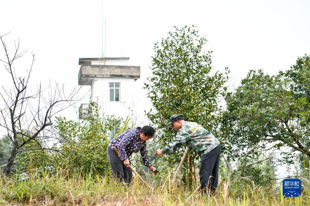 3月9日,黄同维与妻子在火情瞭望塔附近的空地补植树苗。