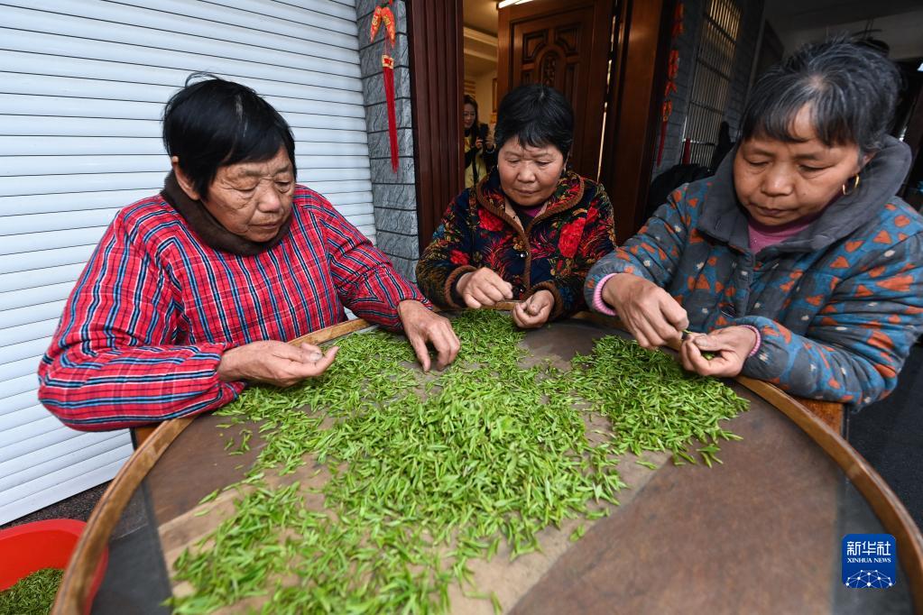 3月22日,赵家镇东庄村上阳自然村的茶农在挑选刚采摘的高山有机茶。