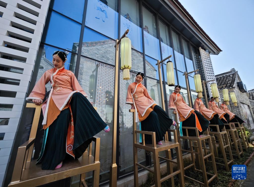4月1日,演员在位于江苏省盐城市建湖县的淮剧小镇表演淮剧。
