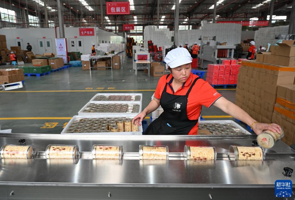 4月19日,在全国农村创业园区(基地)——辰颐严选产业园的电商农产品深精加工车间,员工在检查农产品包装。