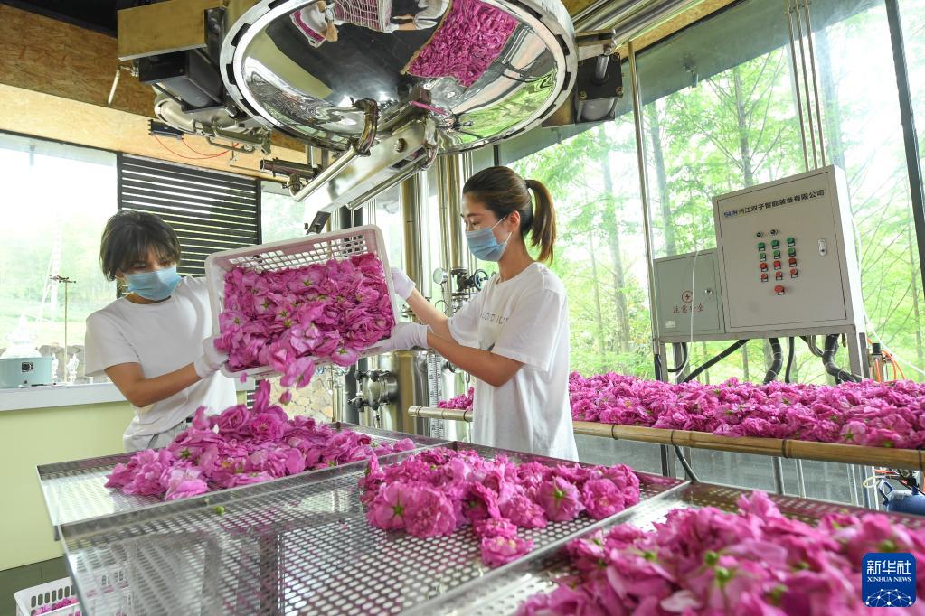 4月20日,工作人员处理刚采摘的玫瑰花,准备烘干。
