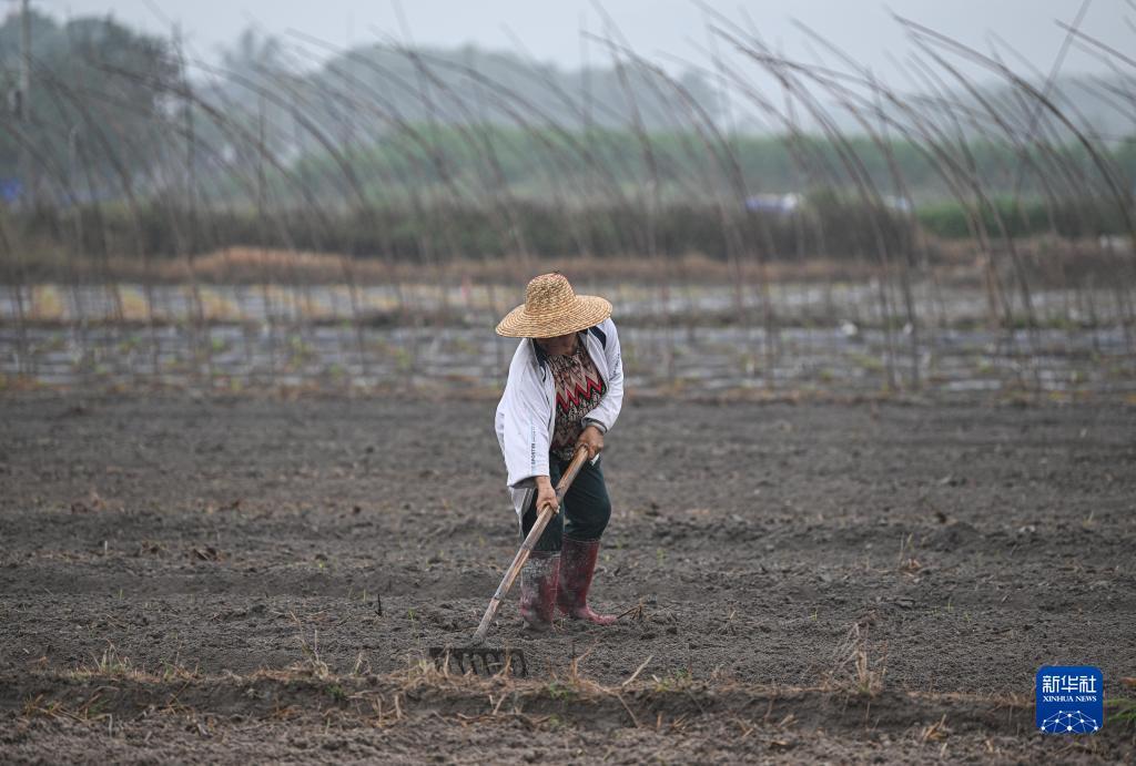 12月2日,农民在海南省屯昌县枫木镇整地,为种植枫木苦瓜做准备。