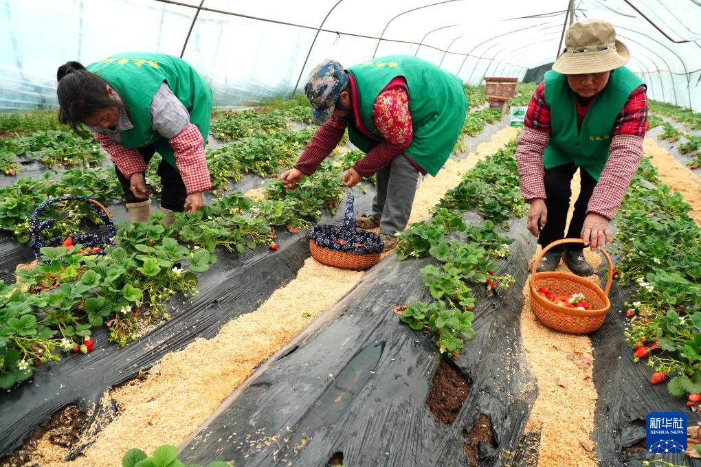 近日,山东省枣庄市的大棚草莓种植户忙着采摘成熟的草莓。近年来,枣庄发展大棚草莓种植产业,帮助农民拓宽增收渠道。
