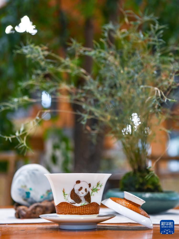 这是第二代“熊猫抱竹”盖碗茶杯(3月6日摄)。